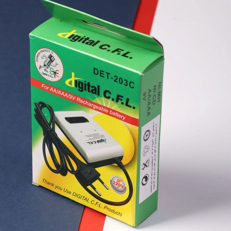 شارژر باتری دیجیتال CFL مدل DET-203C یکی از محصولات کاربردی و پرطرفدار در حوزه شارژ باتری است که برای انواع باتریهای قلمی و نیمقلمی طراحی شده است. این شارژر به دلیل امکانات مدرن و طراحی کاربرپسند، بهویژه در بین کاربران حرفهای و خانگی محبوبیت یافته است.