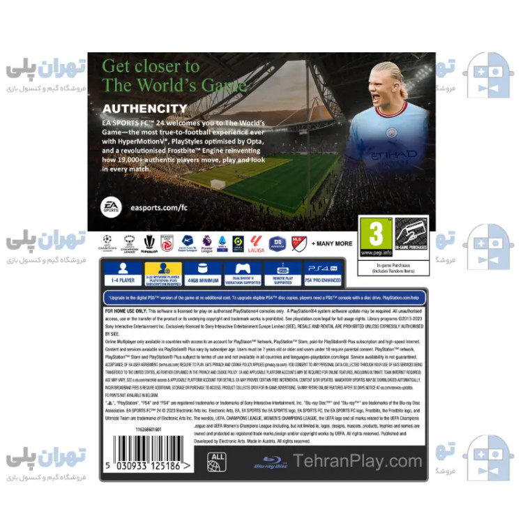 FIFA 24 (با نام جدید EA Sports FC 24) آخرین نسخه از سری محبوب فوتبال الکترونیک است که توسط EA Sports منتشر شده است. این نسخه تغییرات قابل توجهی در گرافیک، گیمپلی و حالتهای مختلف بازی دارد، اما نسخه PS4 به دلیل محدودیتهای سختافزاری، برخی از ویژگیهای نسل جدید (PS5/Xbox Series X|S) را ندارد.