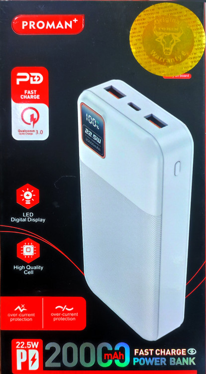 پاور بانک20000 پرومن یکی از بهترین برند های موجود در بازار میباشدکه با توان شارژدهی 22.5 وات میتواندجواب گویی تمام گوشی ها روز دنیا باشد.